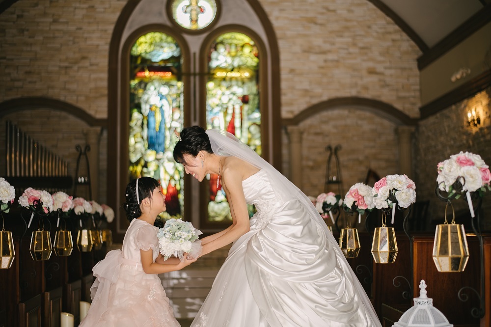 こちら♡ ピンクのドレスがとってもお似合い! 可愛い新郎新婦様のお子様☆彡
