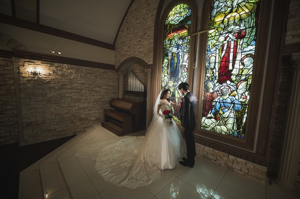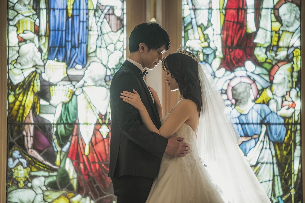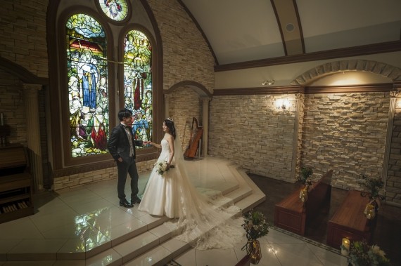 また、おふたりの目線の高さにステンドグラスがあるのも魅力の一つです。