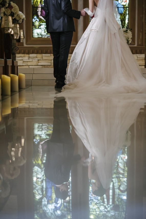 そして、バージンロードにはステンドグラスとおふたりの姿が映りこむので、とっても幻想的な空間になります。