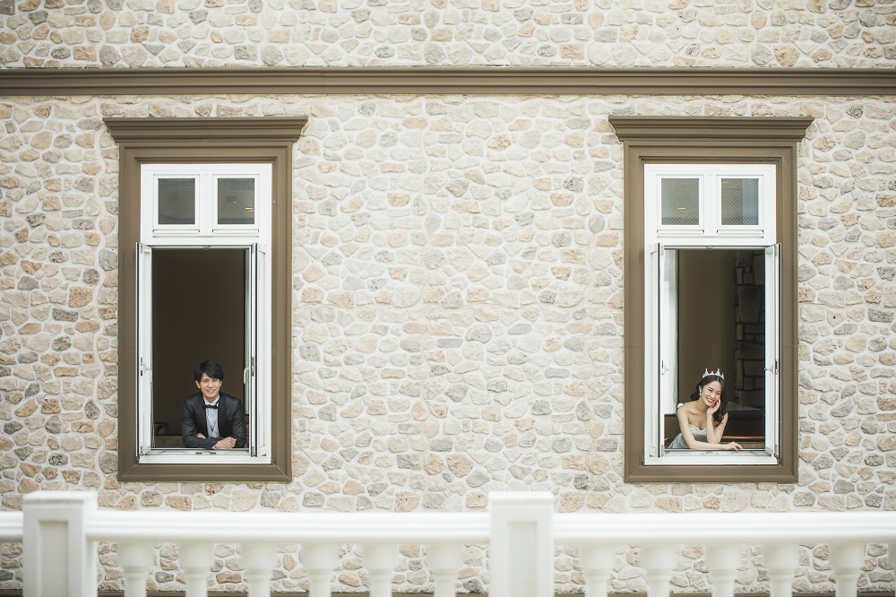 フロアごとに雰囲気が異なるので、1階は白を基調とした高級感ある写真が撮影でき、2階は石造りのブラウンを基調とした落ち着いた空間です。