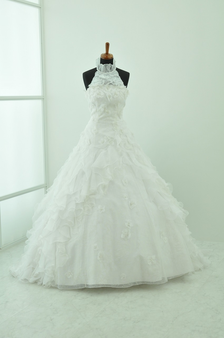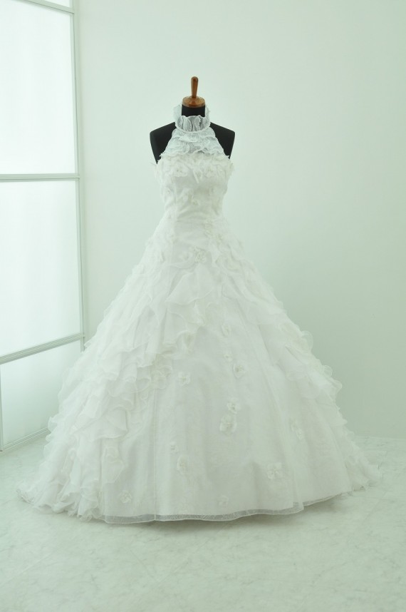 襟部分が立ち上がっていて肌の露出が少ないので、正統派な教会式にもおすすめのネックライン。