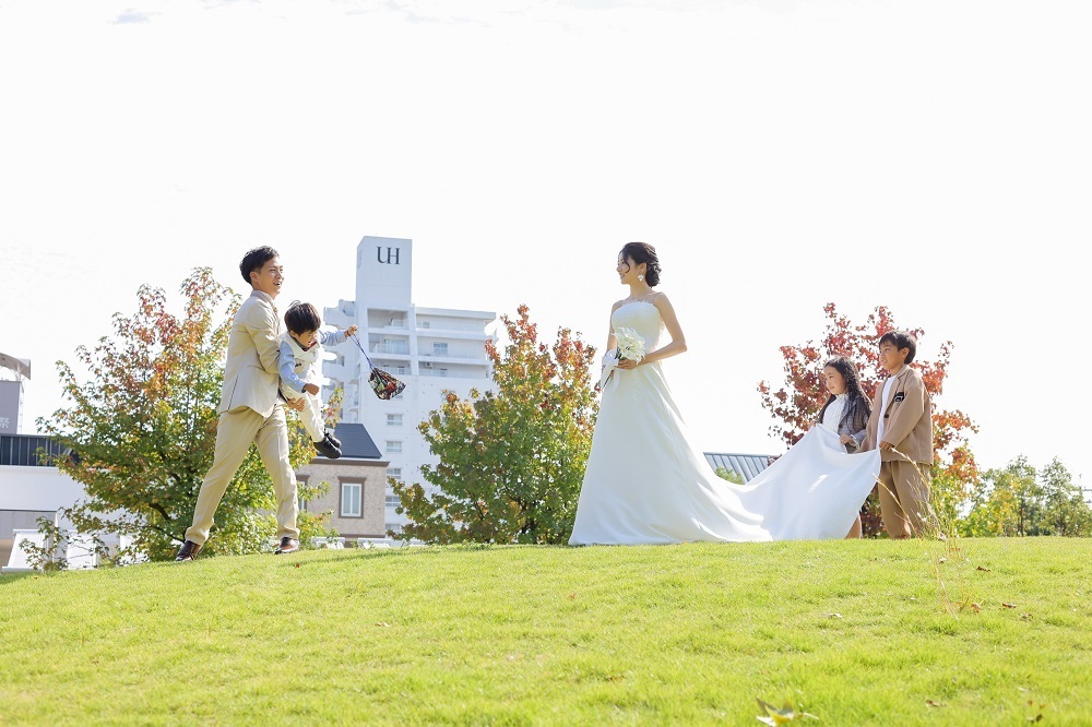ご家族の皆さまとも一緒に撮影されると、とてもアットホームなお写真撮影になります。