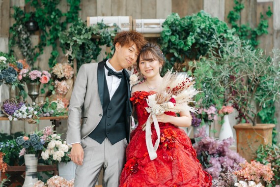 今回の記事では、最近着用される方の増えてきた「赤色のカラードレス」についてご紹介します✷