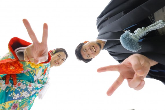 背景の空をわざと白く抜いてしまえば、お二人だけが浮かび上がる個性的な1枚に!