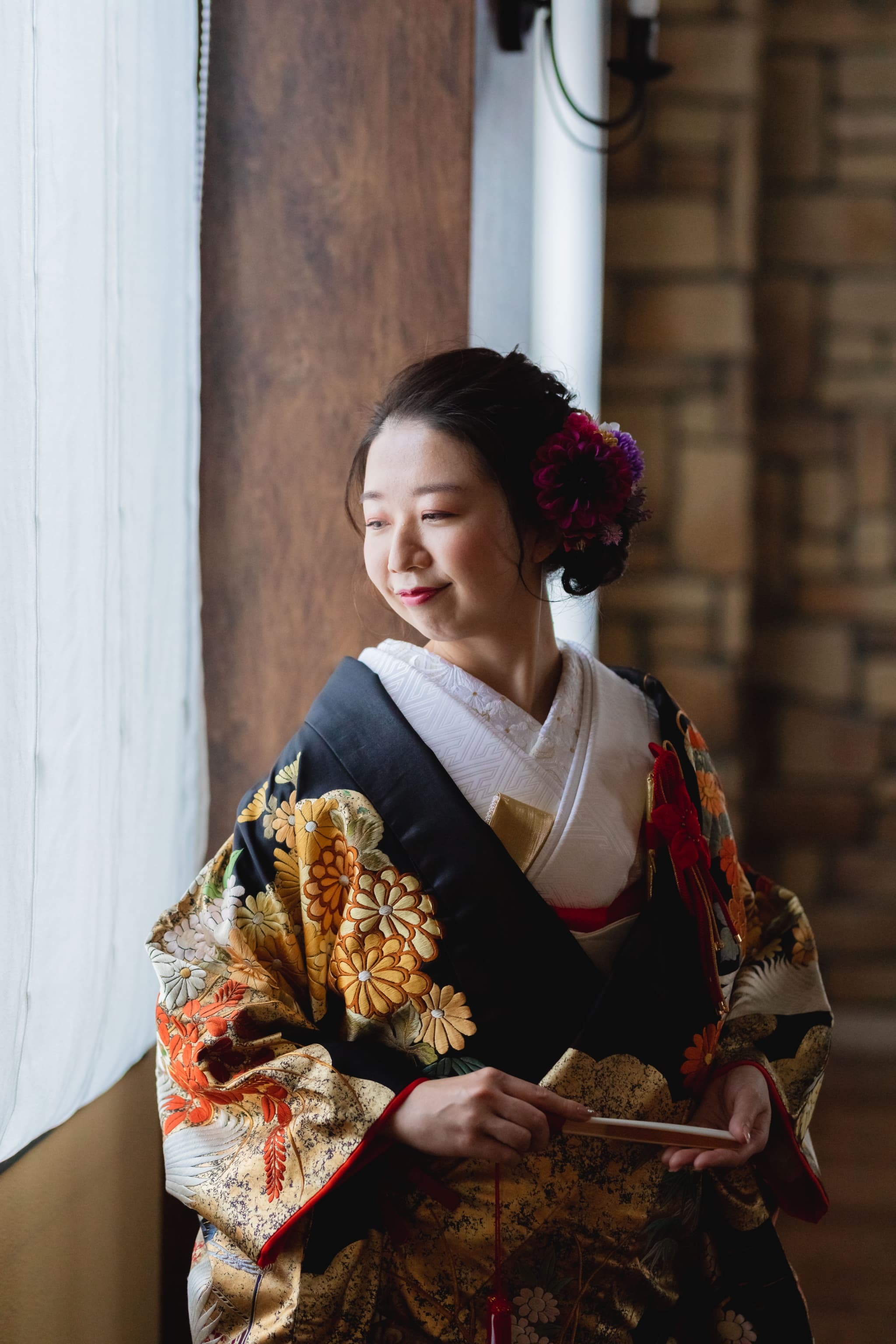 今回紹介する花嫁様の着用された色打掛のお色は黒✷