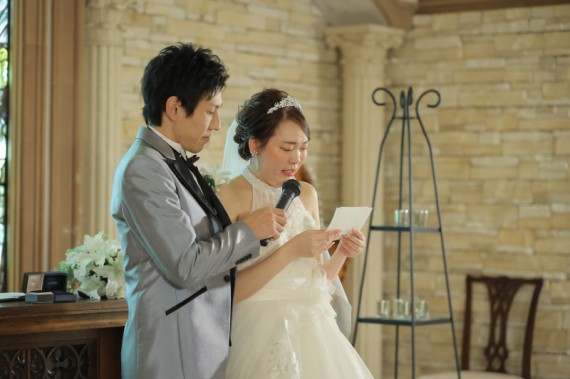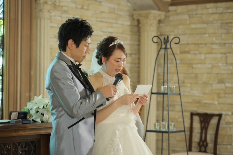 誓いの後は、お二人からお手紙サプライズと花束のプレゼント!
