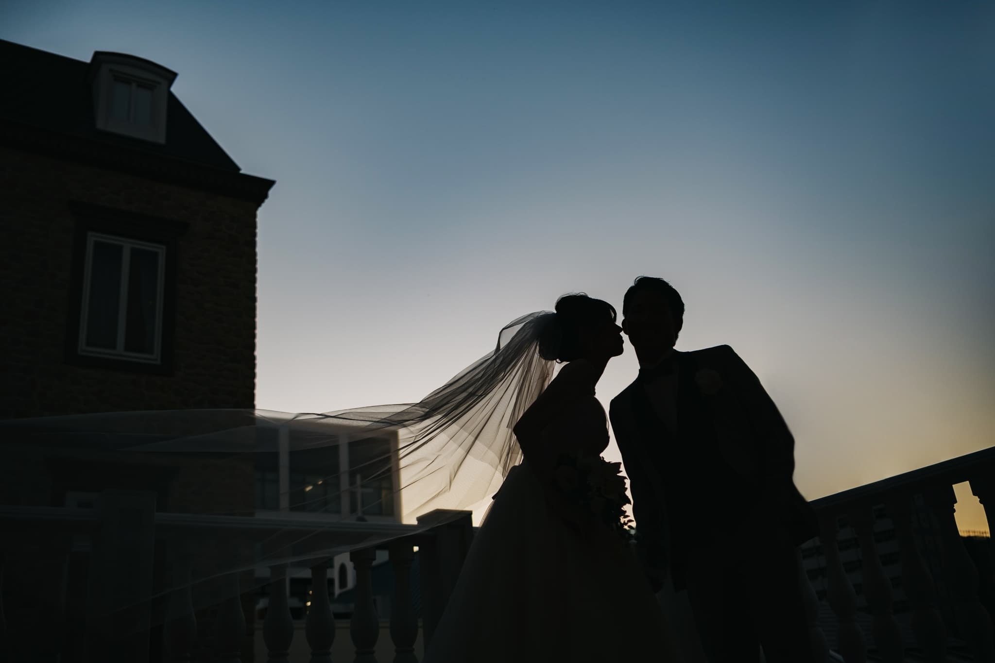 新婦様から新郎様へほっぺにキスしているシルエットがロマンティックですよね♪