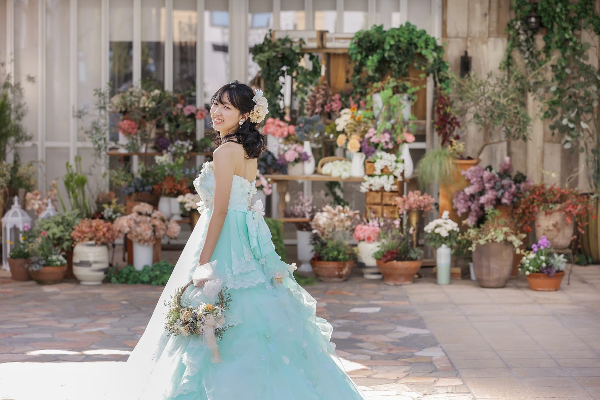 ドレスもブルーのカラードレス、アクセサリーもブルーで統一された花嫁様!