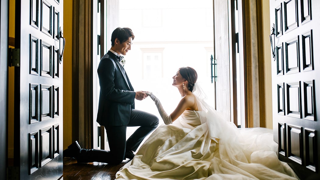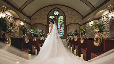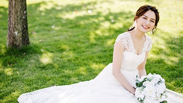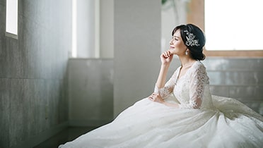 上品な雰囲気を纏うことのできる、繊細なレースやチュール、柔らかいシルクサテンを使ったドレスが似合います✷
