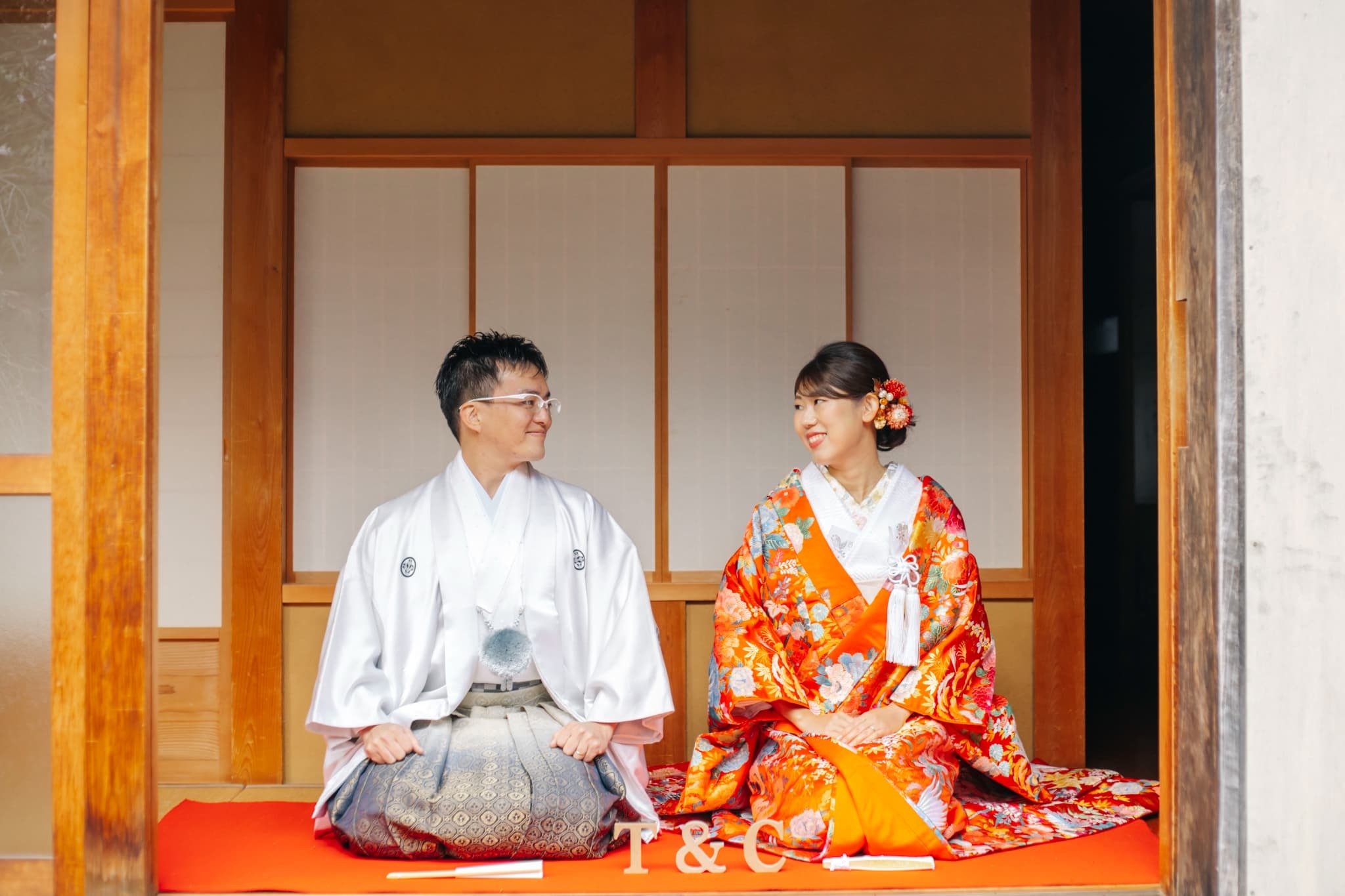 ぱっと目を引くオレンジの色打掛も、柄が繊細なので大人っぽく着こなせます♪