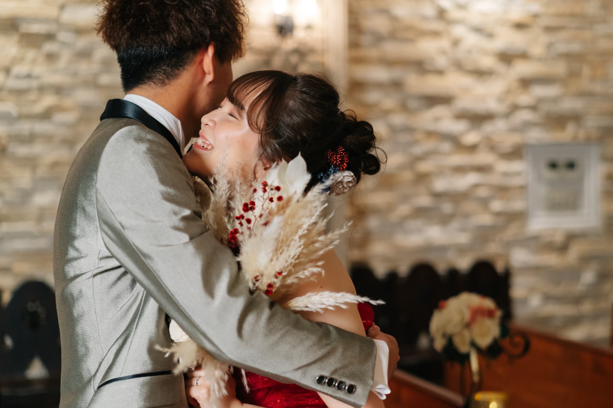 笑顔で見つめ合いながら、ハグをする瞬間♡