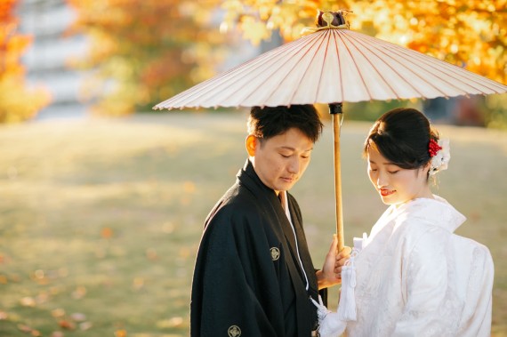 真っ白な白無垢に合わせる髪飾りも白で統一!