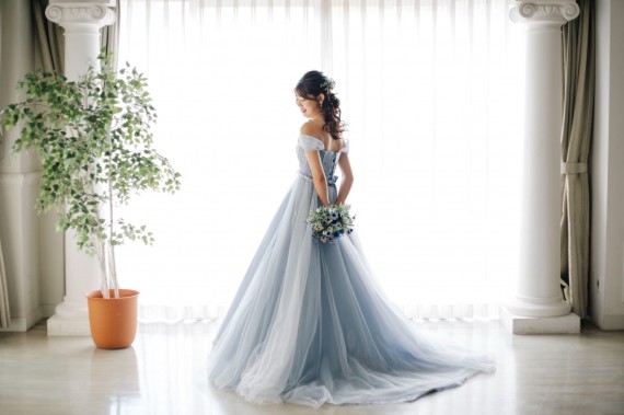 シンプルな淡いブルーのドレスには濃いめのブルーの髪飾りを✷