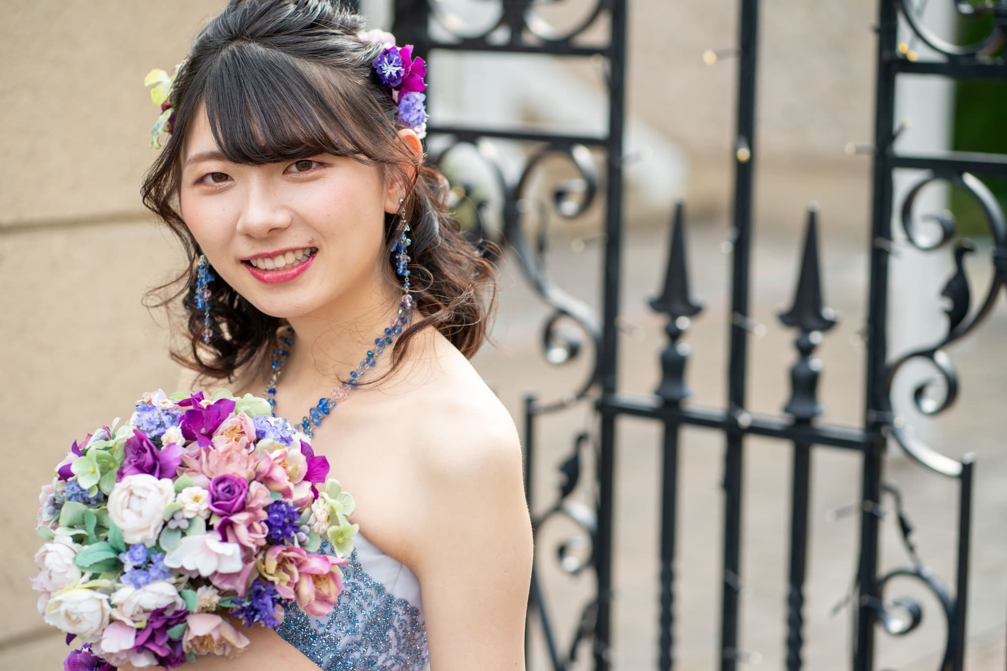 衣装やブーケなどと色味を合わせることがコーディネートを引き立てるポイントになります!
