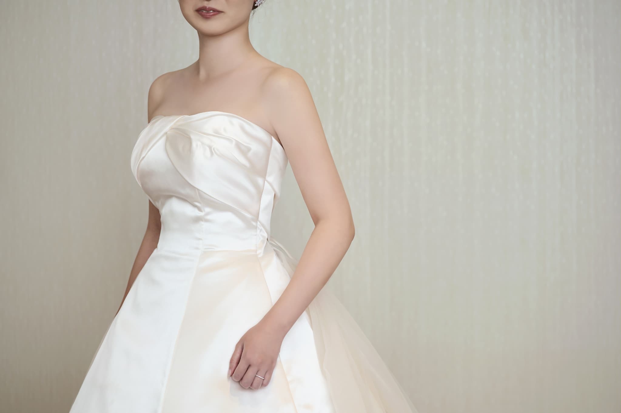 モデルさんでもドレスを着用すると、胸元や二の腕まわりにお肉が乗ってしまう場合も。