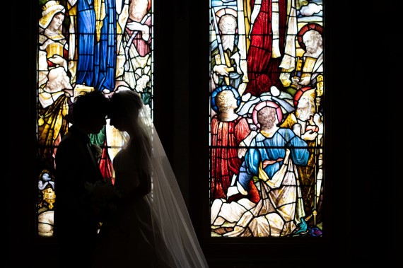 電気を消している時はステンドグラスの光を逆光に、お二人のシルエットが強調されるお写真を残すことが出来ます!