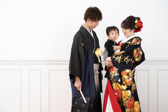 新婦様も黒の色打掛を着用しているので、家族3人でリンクコーデのような1枚に!