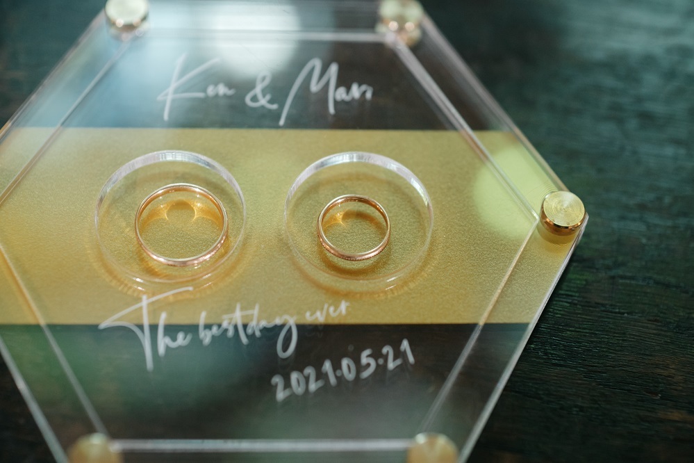 結婚指輪はもちろん、おふたりの思い出のもの、共通の趣味のグッズ、小さい頃のお写真やお互いに向けてのメッセージなどなど…
