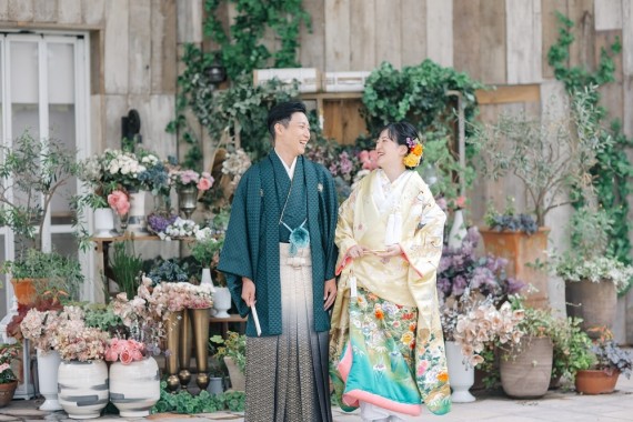 カラードレスだけでなく、和装ではこんな素敵なガーデンでのショットに仕上がります。