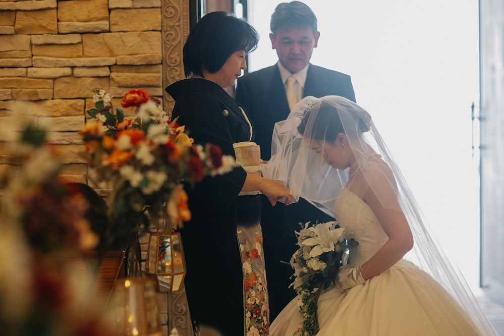 ベールダウンは、ご新婦様が、ジャケットセレモニーはご新郎様がご家族に最後の身支度をしてもらうセレモニーです。