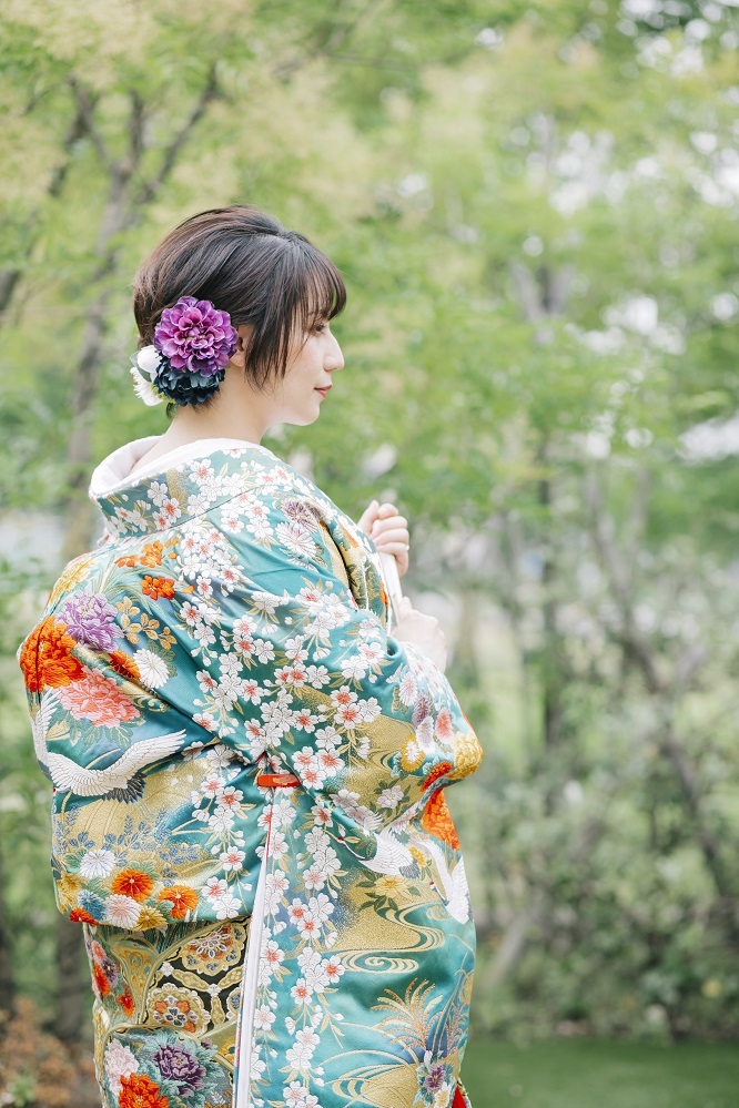 色打掛も髪飾りも華やかな雰囲気にしました。