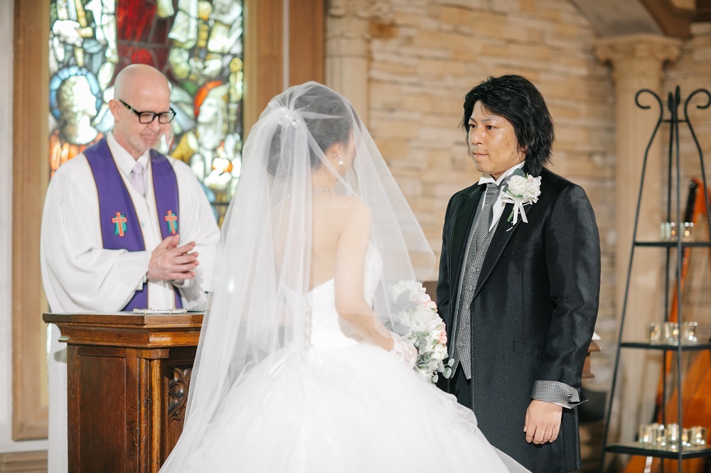 キリスト教式は、新郎新婦のおふたりがゲストに背中を向けるのに対し、人前式はゲストに対面して挙式を執り行います。