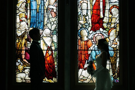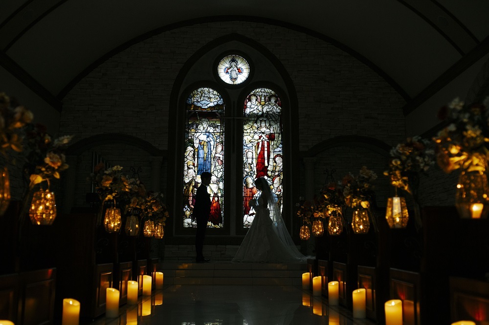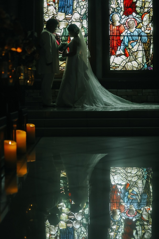 キャンドルとステンドグラスに照らされて、とても臨場感あふれるお写真です。
