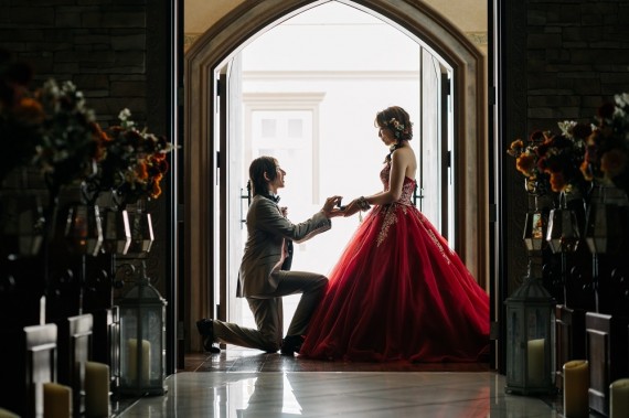 あえて自然光だけで照らされた中でのプロポーズシーン、とっても素敵です♡