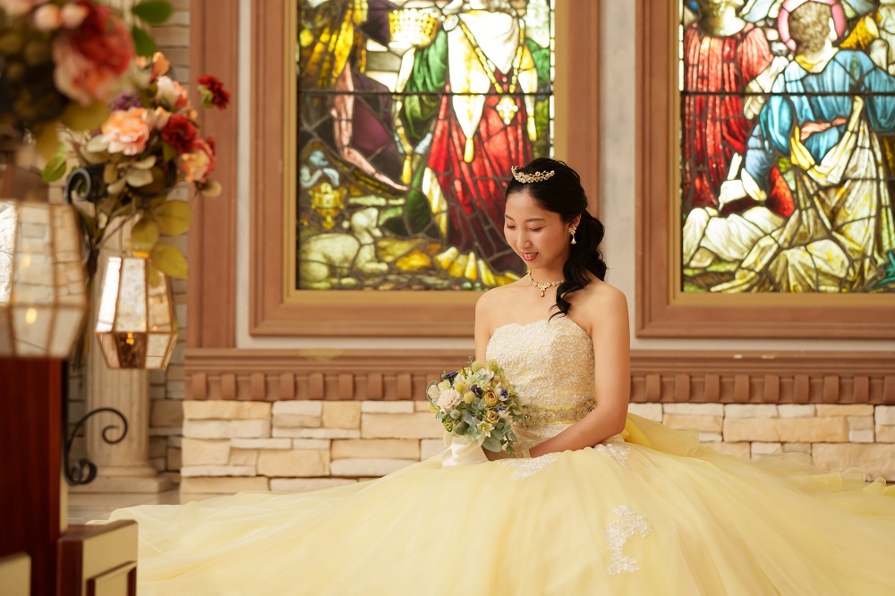 カラードレスPick Up|色変化をお楽しみ!?淡いイエロードレス