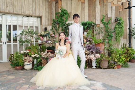 ガーデンの色とりどりのお花がある分、淡くなったことで、おふたりもしっかりお写真に溶け込みました。