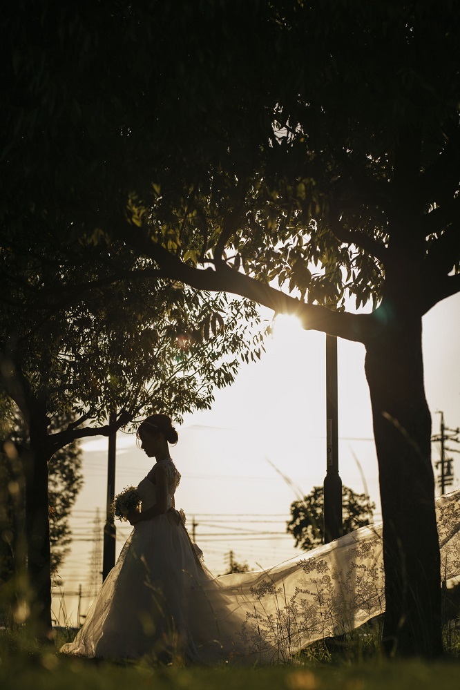 後ろ姿を撮ることでこだわりのヘアスタイルや、お衣裳も映すことができます◎