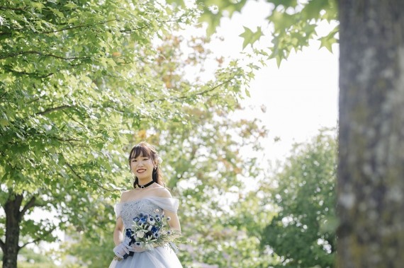 また、ブーケのリボンに青を入れることで全体的に淡くなりすぎず、お写真の中のアクセントに。