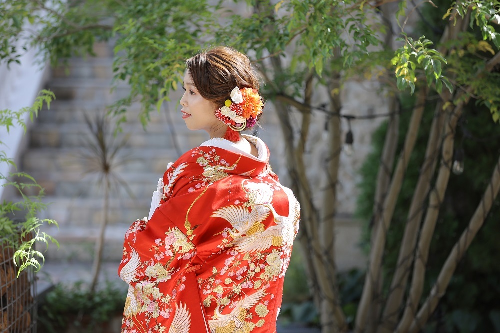 その中でも今回は、赤×金×鶴という縁起の良さ100点の色打掛をご紹介いたします。