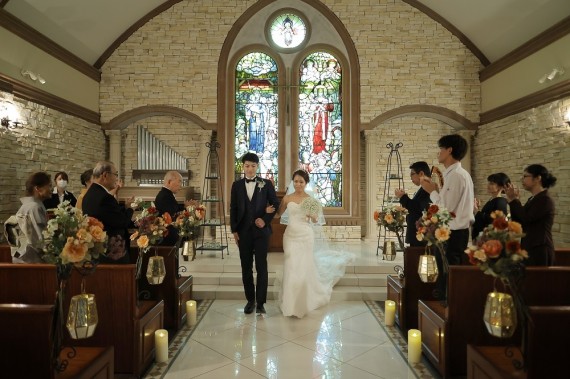 実際の挙式と違うのは、牧師や聖歌隊がおらず、「おふたりらしい」セレモニーを創り上げられること!