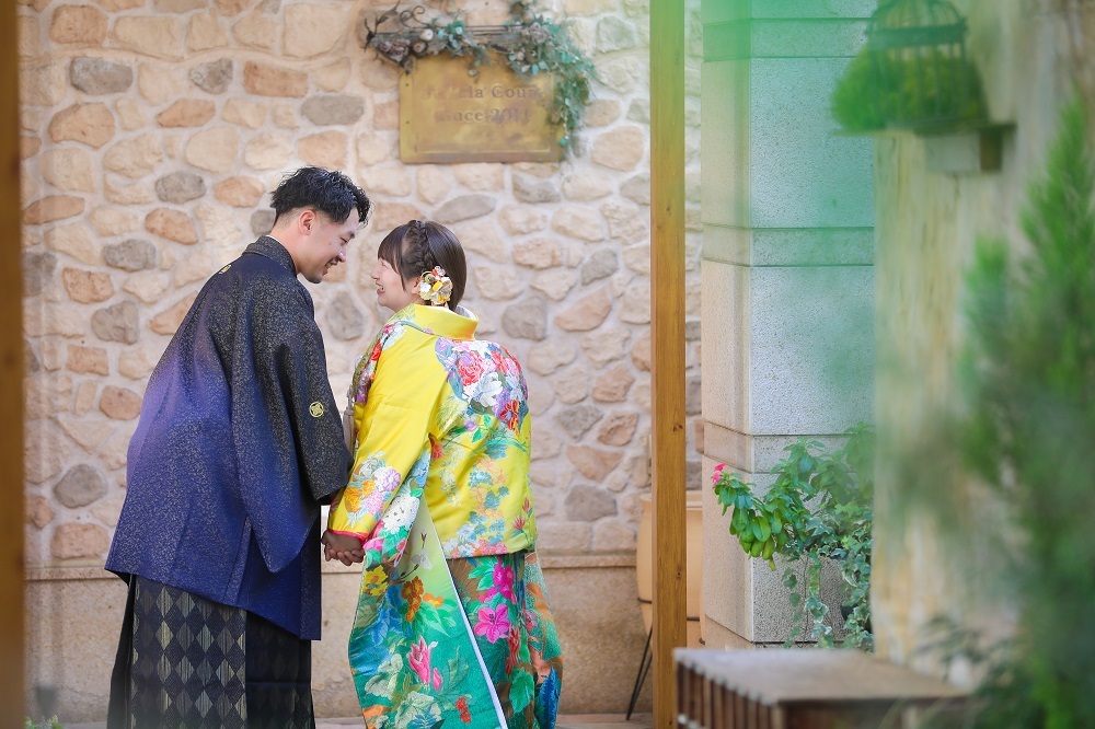 どれもフルールでご用意がありますが、今回はイエロー×エメラルドグリーンという少し変わった色打掛です☆彡