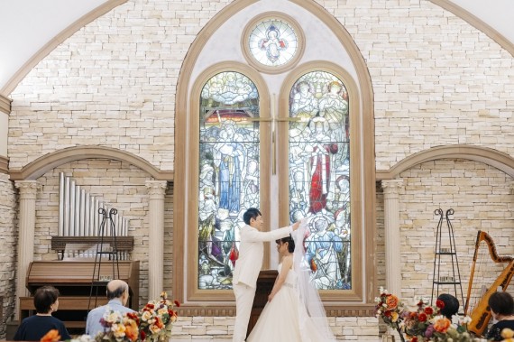 ベールアップだけでなく、お父様とバージンロードを歩く姿、誓いのキスなども流れで撮るので、うるっとしてしまう瞬間もパシャリ☆彡