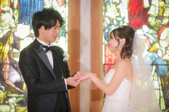 チャペルでの指輪交換は一生に一度しか体験できませんよ~!