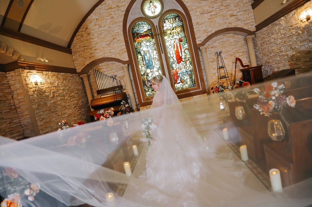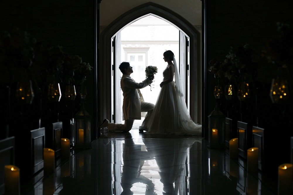 チャペル内の照明をキャンドルだけにして、シルエットにしたのがポイント!