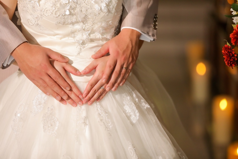 ご新婦様のおなかに手を当てて、♡を作りました°˖✧