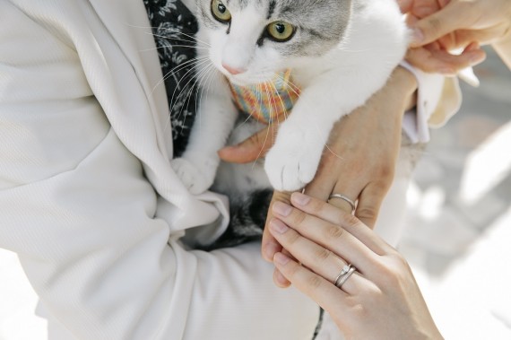 おふたりとねこちゃんの手を合わせて、撮りました!