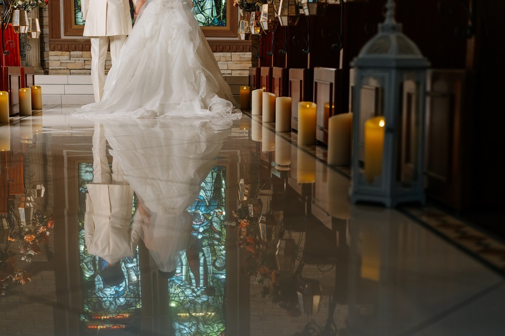 そして、ウェディングドレスのロングトレーンもきれいに映っています!