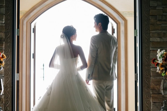 こちらは、チャペルの出口のでおふたりを映したお写真です。
