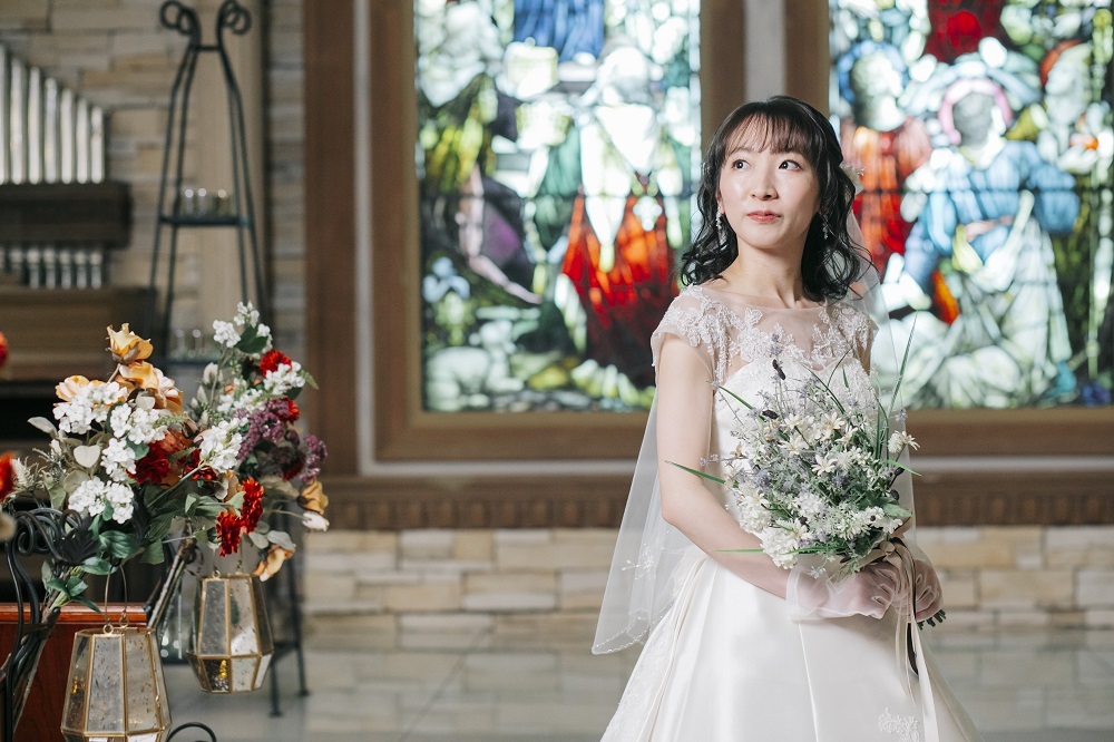 ティアラなし&クラッチブーケがよりナチュラルさを引き出してくれます。