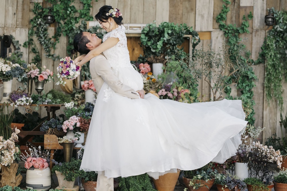本物のお花を使った、アンティーク調のガーデンで撮影!