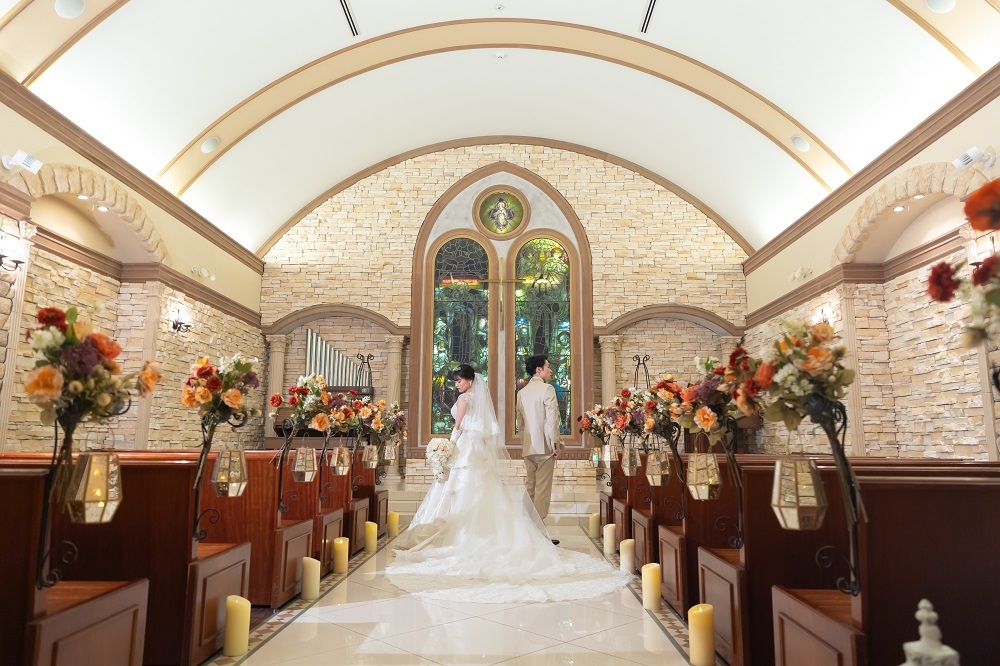 実際に結婚式がおこなわれているチャペルで撮影するからこそ、その重みや、雰囲気もしっかりと味わうことができます!