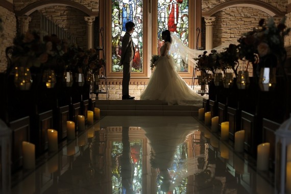 ステンドグラスがおふたりの輝かしい未来を表しているようです。