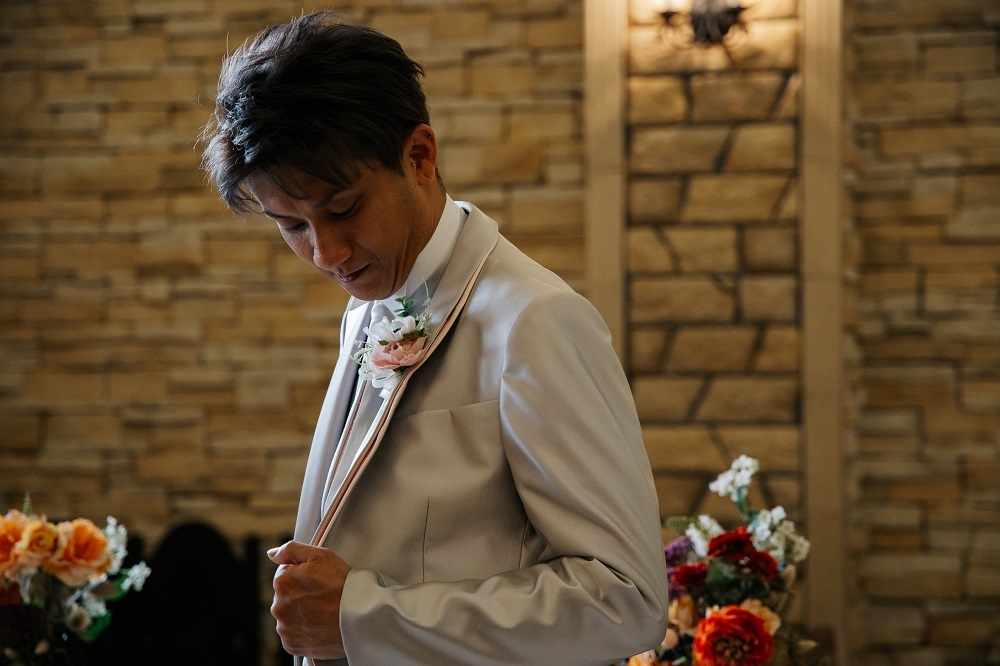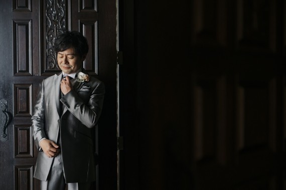 ネクタイやジャケットに手を当てたり、ブーケを持つなど動きをつけるのもポイント☆彡