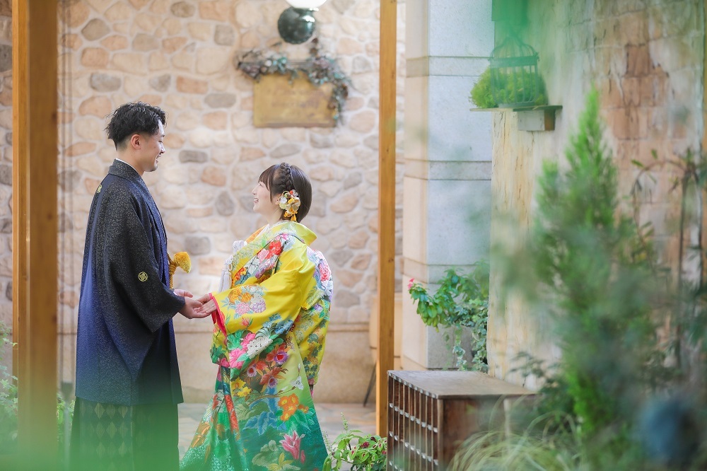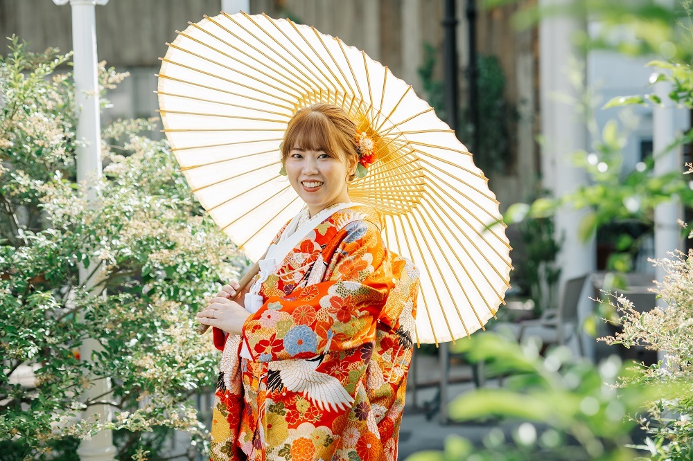 赤やオレンジ、黄色などの明るい色を選んでいただき、髪型はアップにするとGood◎