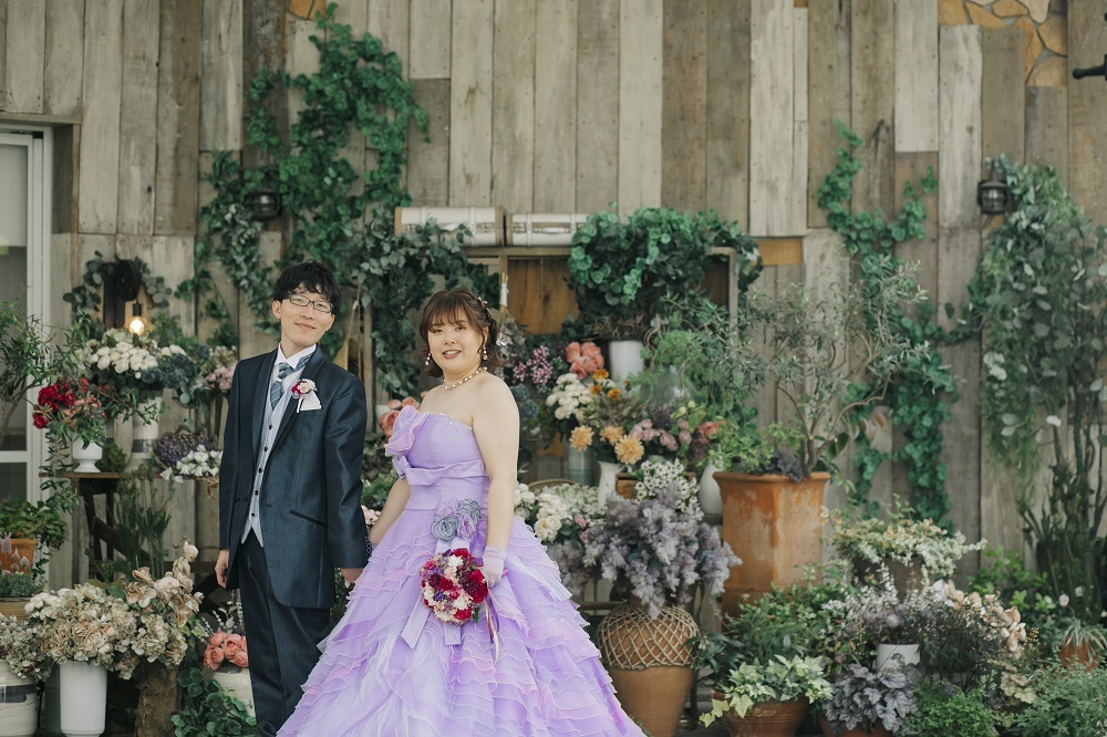 1枚目のピンクのドレスでは、ブーケを2枚目のようなラウンドブーケにするともっと可愛らしさが増しますよ!