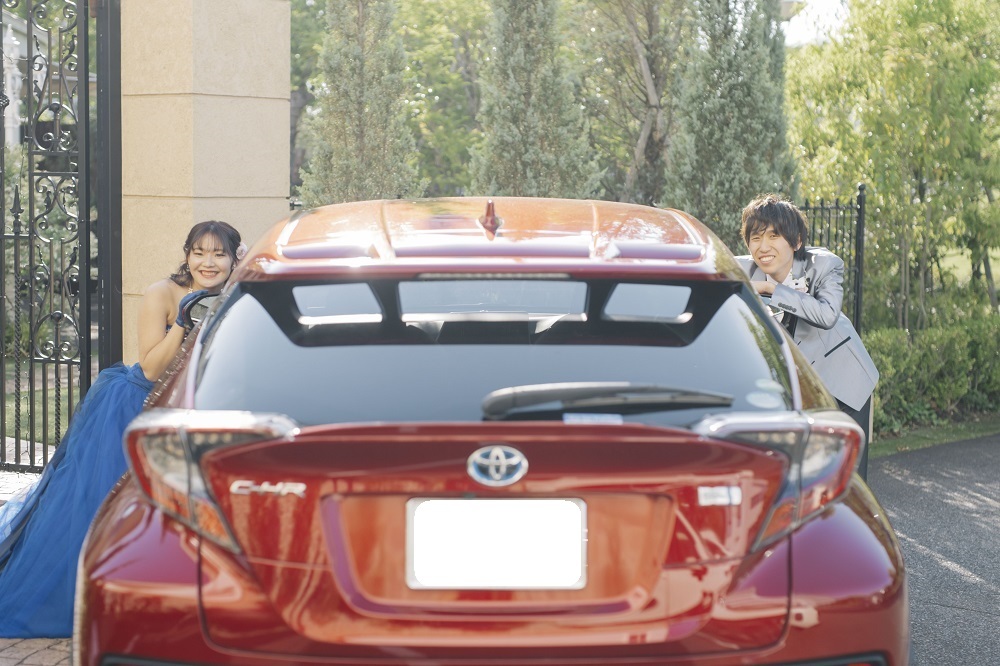 愛車と撮影したり、自然光がたっぷり入る披露宴会場で撮影したりと45分の撮影時間はあっという間に過ぎてしまいます。